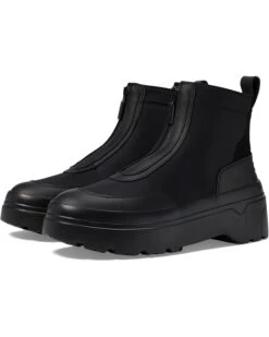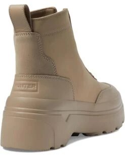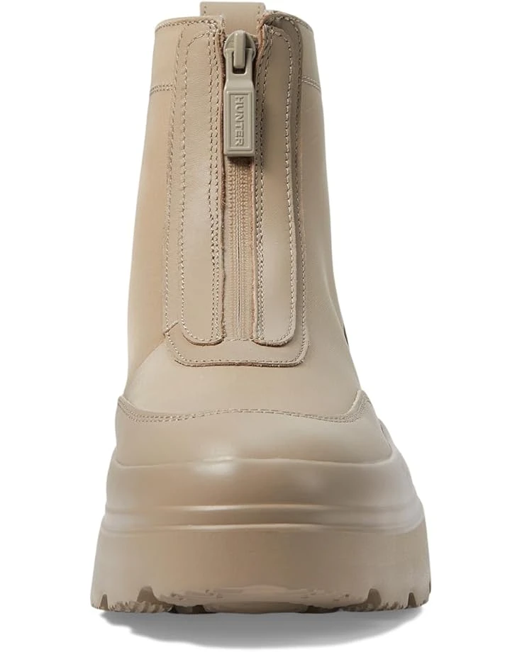- Complement versatile outfits with the ultra-modern Hunter® Explorer Ankle Zip Flatform Boot that comes with a rubber upper, recycled polyester lining, and a removable recycled polyester footbed for comfort. The boots feature a round toe shape and a center-zipper closure for easy on/off.