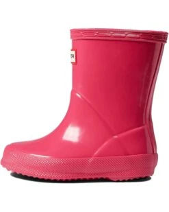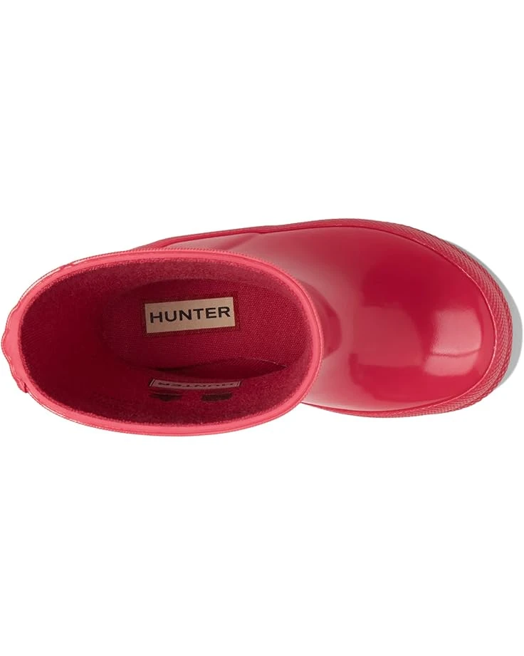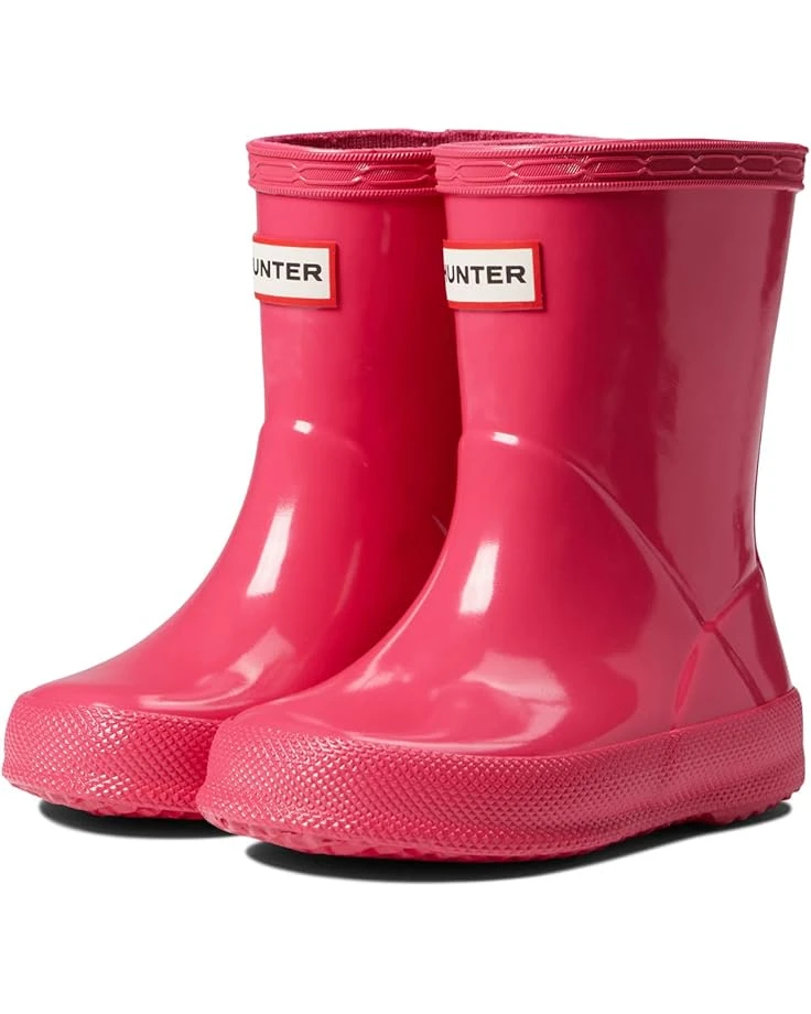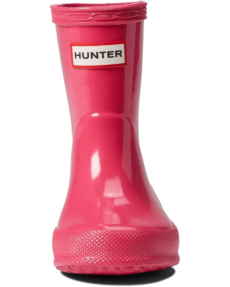 - The Hunter® Kids Original First Classic Gloss Rain Boot is a specialized children’s rain boot, designed for growing feet, with a gloss finish. The Wellington design has a flatter sole and rounder foot ensuring this style is easier to walk in. A wider upper leg offers freedom of movement, as well as making the putting-on and taking-off process easier. Hunter is a British Heritage brand, making boots for over 160 years and with two royal warrants.