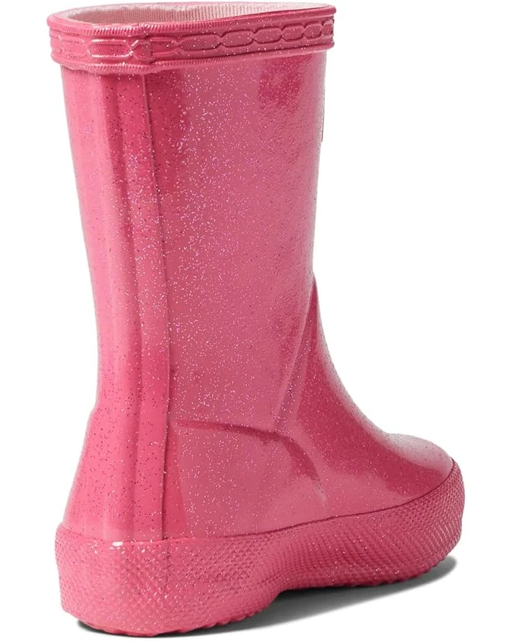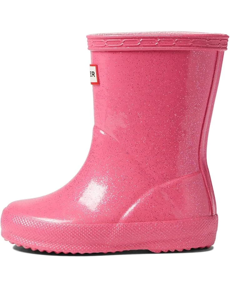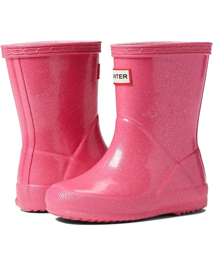 - A classic look with a whimsical twist, the Hunter® Kids First Classic Starcloud rain boots. The Hunter® Kids Original Kids’ First Classic Gloss Rain Boot is a specialized children’s rain boot, designed for growing feet, with a gloss finish. The Wellington design has a flatter sole and rounder foot ensure this style is easier to walk in. A wider upper leg offers freedom of movement, as well as making the putting-on and taking-off process easier. Hunter is a British Heritage brand, making boots for over 160 years and with two royal warrants.
