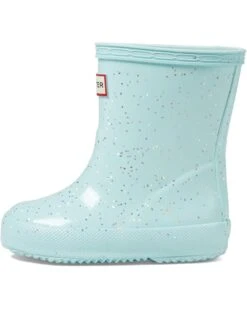 - Let your younger one make some splash in the water while keeping their feet perfectly protected from those wet weather elements by opting for the Hunter® Kids Original First Classic Giant Glitter Boots. These fully waterproof, mid-calf shoes are handcrafted with a natural rubber upper with a glitter finish, a soft recycled polyester lining, and a comfortable rubber insole.