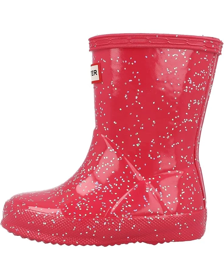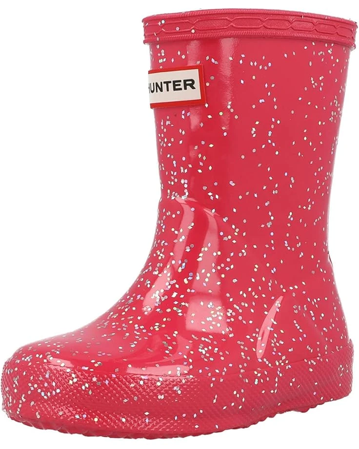 - Brighten her day and mood with the sparkly Hunter® Kids Original First Classic Giant Glitter Wellington Boots. The mid-calf rain boots are constructed in a natural vulcanized rubber with a glossy glitter finish.