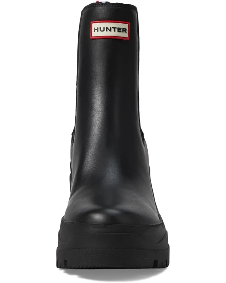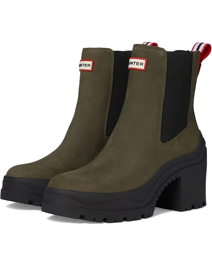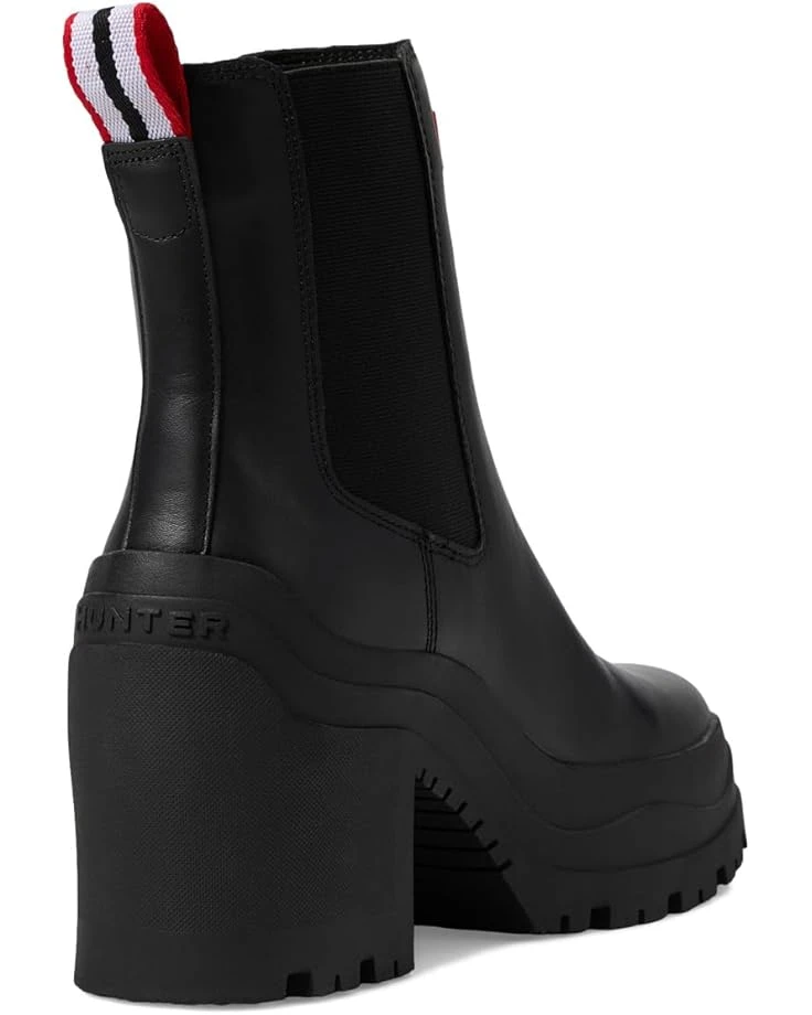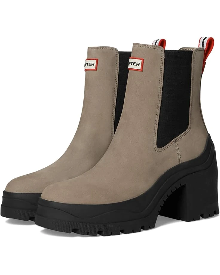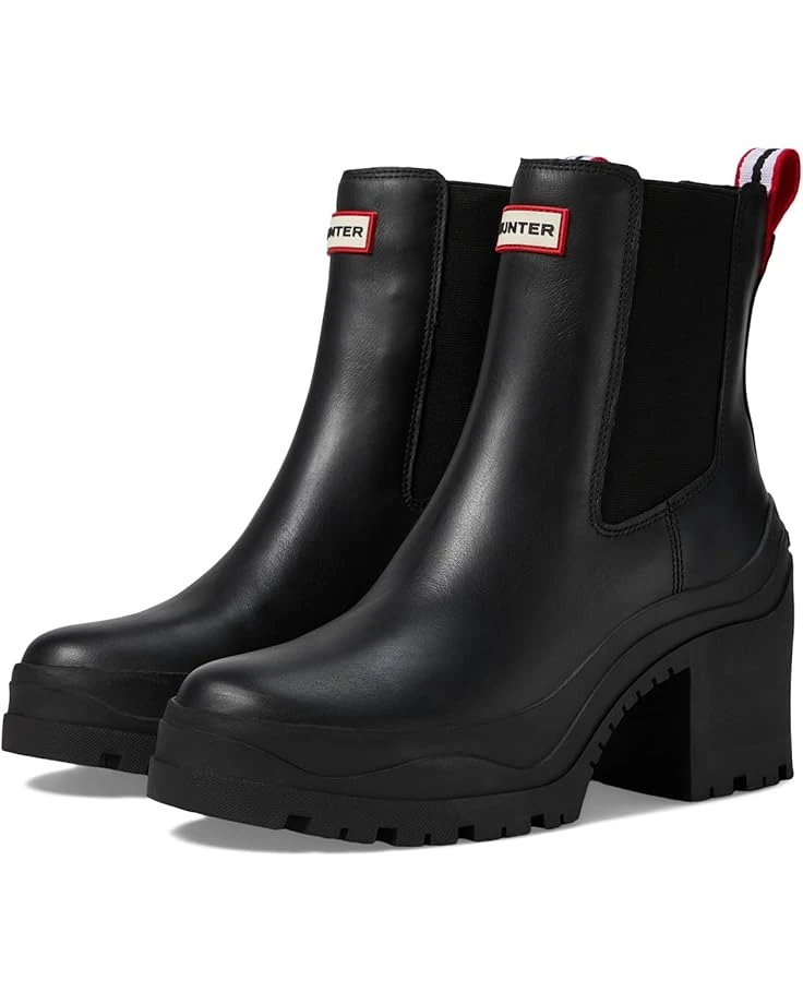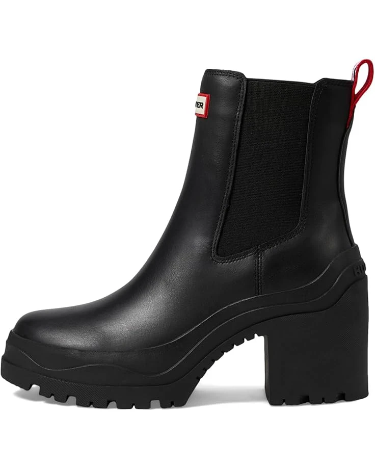 - Keep yourself comfortable and dry wearing the Hunter® Miana Boots. The almond toe boots are crafted in a waterproof construction, with a rubber upper with elastic gore sides for easy pull-on, polyester lining, and a polyester insole. The solid block heel elevates the style and the ankle pull tab allows easy donning & doffing. The brand logo detail on the front adds authenticity to the look.