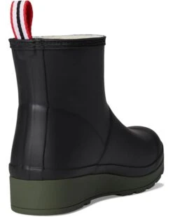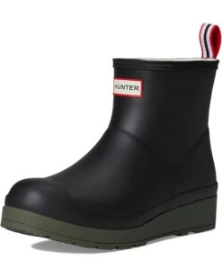 - Keep your feet cozy and dry while going places wearing the Hunter® Play Shrt Insulated Boots. Designed in a midcalf silhouette with a round-toe shape, the pull-on style waterproof boots feature a rubber upper, polyester lining, and removable polyester insole. The ankle pull tab is designed for donning & doffing and the brand logo detail on the front elevates the authenticity effortlessly.
