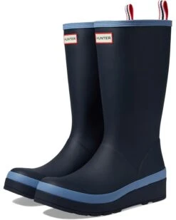 - Step up your style game with the HUNTER® Women PLAY TALL BOOT-where fashion meets function. Featuring a sleek rubber upper and outsole, these boots provide unbeatable waterproof protection up to the knee, perfect for rainy days. The polyester lining and insole ensure all-day comfort, while the pull-on design offers hassle-free wear. Embrace the closed toe design for added durability and chic appeal. Whether you’re navigating city streets or country trails, these boots keep you dry and stylish.