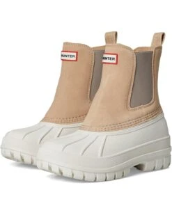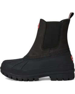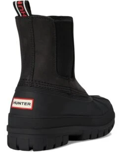 - The Hunter® Sutton boots are waterproof pull-on boots that keep your feet comfortable and dry all day. These mid-calf boots are made of a rubber upper with a heel pull tab for easy wear. The polyester insole and lining add to their comfort and durability. Go out and enjoy the rain wearing these rubber boots.