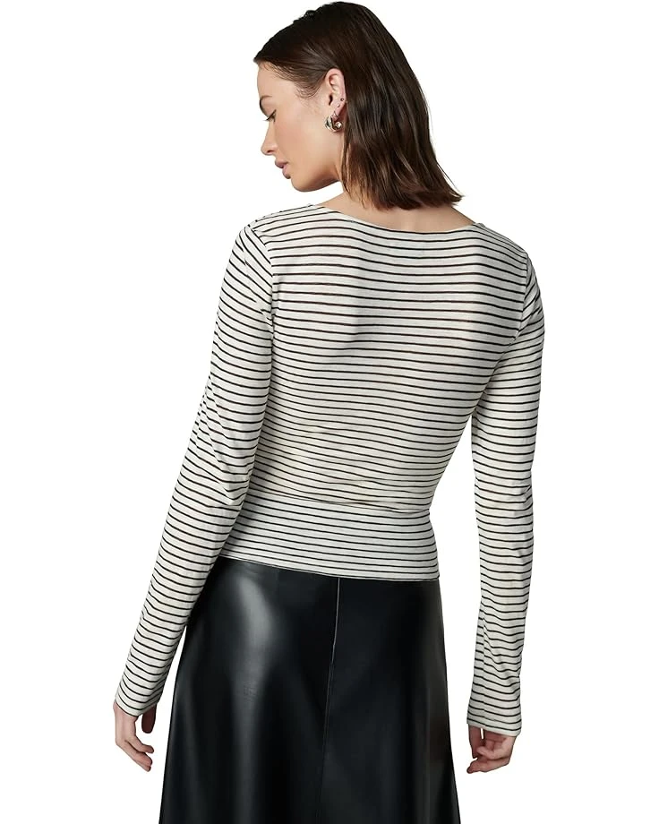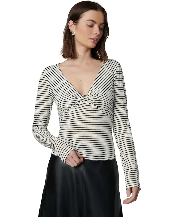 - Top off your look with glamour wearing the Joe’s Jeans® The Ava Stripe Twist V-Neck Long Sleeve Top. Featuring V-neckline, long sleeves, twisted knot at bust, and body-hugging fit.