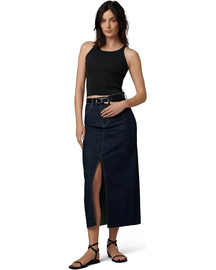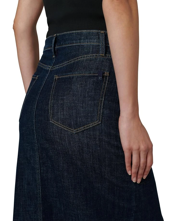 - Step out in style wearing Joe’s Jeans® The Eva Maxi Skirt. The high-rise waist and belt loops offer a flattering fit, while the zip-fly and button closure ensure convenience. The fashionable front slit adds a trendy touch, making this skirt a must-have in your closet.