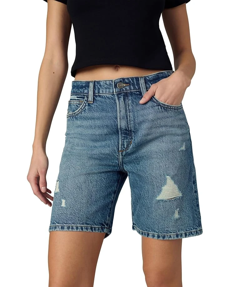 - Elevate your denim style in the Joe’s Jeans® The Joey Shorts. Featuring a button front with a zip-fly closure, belt loop waistband, classic five-pocket styling, and distressed detailing.