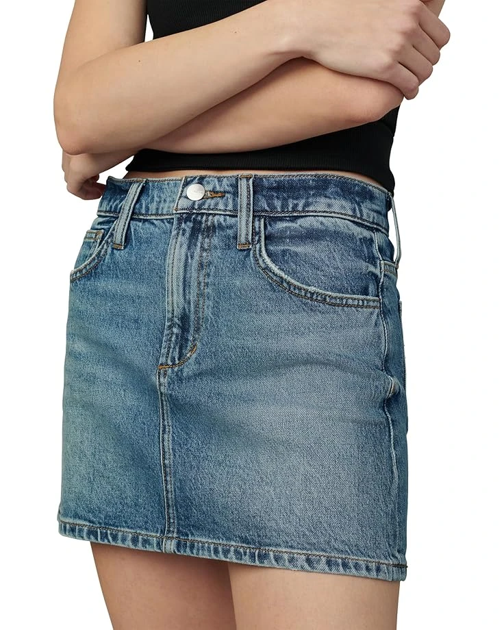 - Stay on trend in the Joe’s Jeans® The Tessa Mini Skirt. Crafted from cotton, this mini skirt offers a button front with a zip-fly closure, belt loop waistband, classic five-pocket style, and a straight hemline.